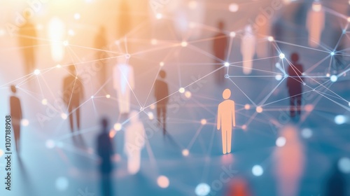 business networking graphic of Human figures in bright colors interconnected by lines, emphasizing relationships and individuality in a broader network.