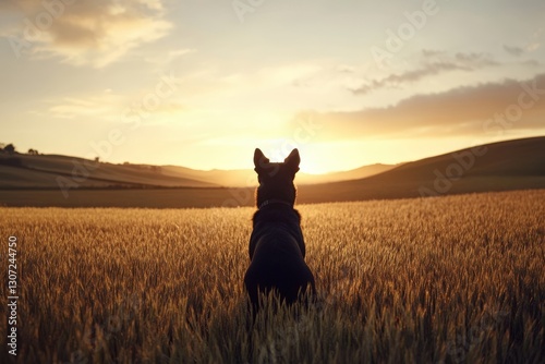 Majestic vizsla dog enjoying golden sunset in wheat field