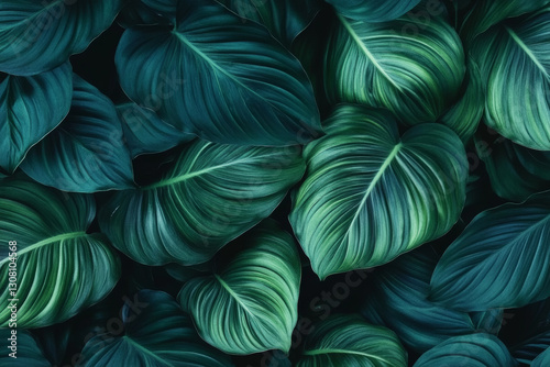 Lush green leaves create vibrant and calming background, showcasing various shades of green and intricate textures. Perfect for nature themed designs