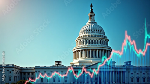 Capitol building with stock market graph symbolizes financial regulation and economic policy.