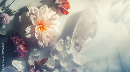 mystic crystals and flowers in soft light – ideal for wellness branding, nature-inspired designs, and spiritual concepts