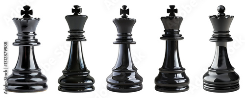 Sleek Black Chess Pieces Arrayed on Transparent Background, PNG bundle collection, Isolated on Transparent Background
