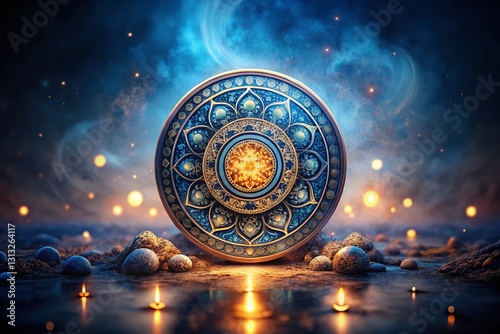 Hand-Painted Night Scene: Magical Circle Minimalist Illustration