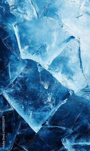 Captivating close-up of translucent ice blocks showcasing captivating textures and glacial hues
