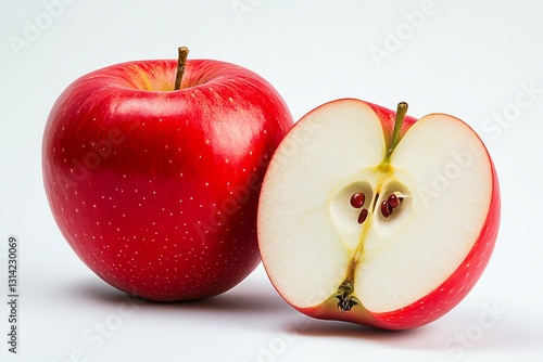 Fresh Red Apples One Whole and One Half with Seeds and Stem