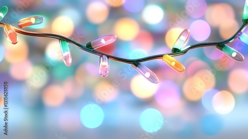 Festive holiday lights twinkle against a bokeh background, used for seasonal decorations