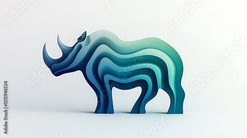 Abstract layered rhino silhouette, teal and blue tones.