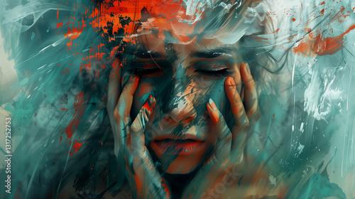 The face of a woman crying, full of emotion and color, an illustration of sadness, despair, helplessness