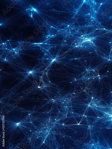 Blue digital network with glowing connections- representing the power of technology and global connectivity. The dark background highlights the light from each connection.