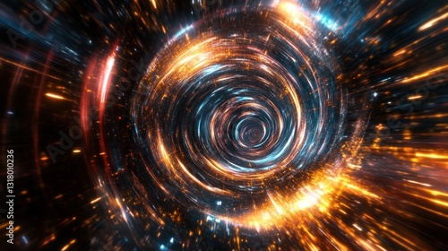 A mesmerizing vortex of glowing plasma threads spiraling into the depths of space