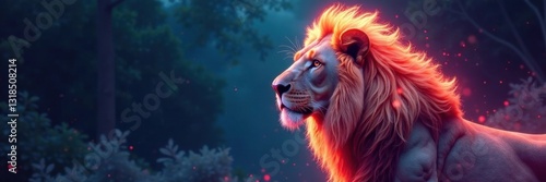 Lion with ethereal fur and glowing horns, Fantasy Animal, Mysterious Land, Ethereal Fur