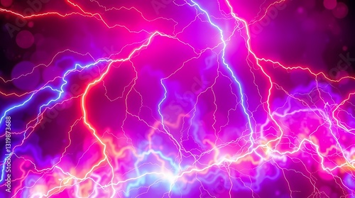 Electric Storm of Color: A vibrant and dynamic display of lightning bolts illuminates a canvas of rich purples and pinks, creating an electrifying spectacle.