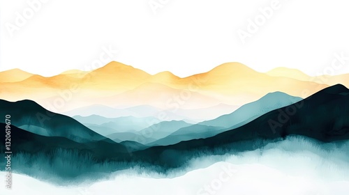 Ink illustration abstract background idea. Vibrant watercolor mountain landscape blending soothing colors and tranquil vibes.