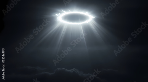 A gleaming white light originates from the core of a black field, encompassed by a luminous halo and projecting rays. Luminous Halo. Illustration