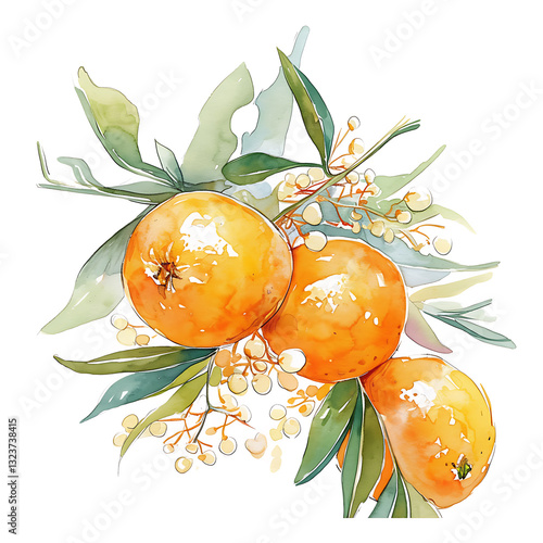 orange picture cartoon 2D, a beneficial fruit, is used as an illustration for advertising.