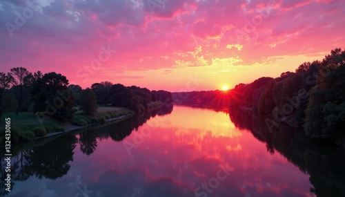 Soft pink hues illuminate the Des Moines River at sunset, river, des moines, landscape