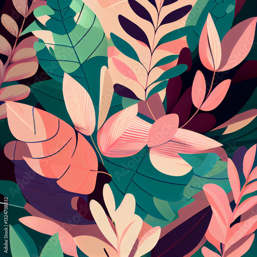 Abstrakcyjna ilustracja kwiatowa 3D – kolorowe kwiaty w pastelowych odcieniach, artystyczna kompozycja roślinna, bogaty wzór florystyczny, nowoczesna grafika cyfrowa, elegancka dekoracja z detalami