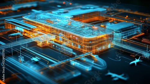 3d model of smart airport's passenger flow data real time metrics travel indicators