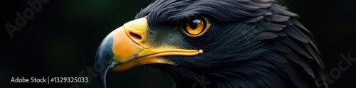 Black eagle head, gold eyes, sharp beak, intricate details , strong, predator, symbol