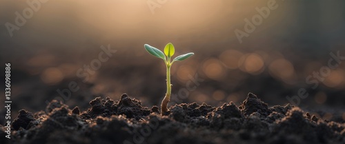 New Life A Single Sprout Emerging from Rich Soil
