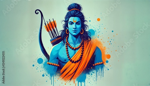 Ram navami poster design with lord rama portrait.