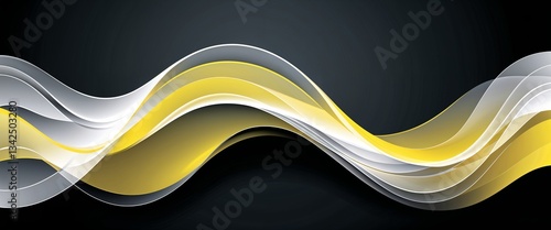 white yellow gradient translucent waves curl curves abstract on plain dark black background illustration design concept backdrop