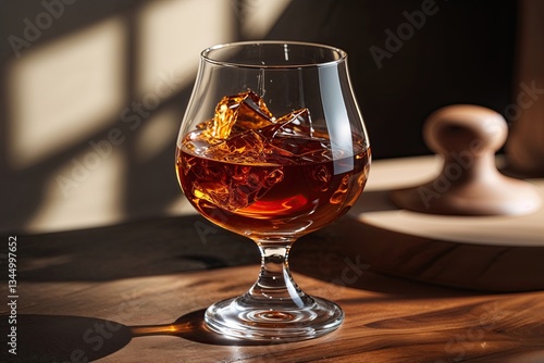 Rich Amber Cognac Closeup in Elegant Snifter Shadowy Detail