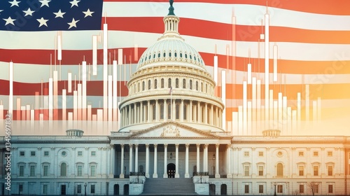 Capitol of US with flag and stock graph symbolizes USA debt ceiling challenges.