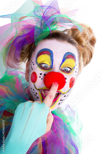 Clown fasst sich an die Nase