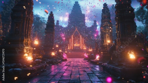Angkor Wat Night Festival Flower Petals Fall