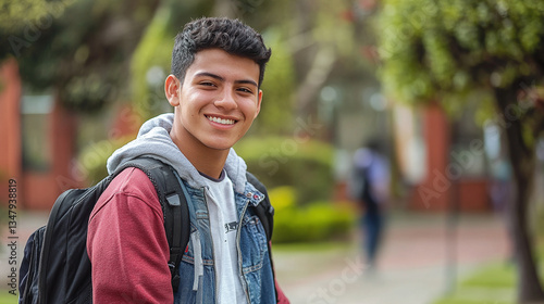 Estudiante latino sonriente en campus universitario