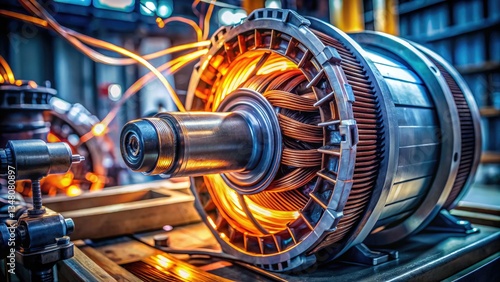 Long exposure reveals electric motor's intricate internal components and wiring.