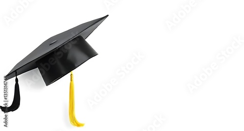 Banner with graduation cap or toga hat and golden foil confetti