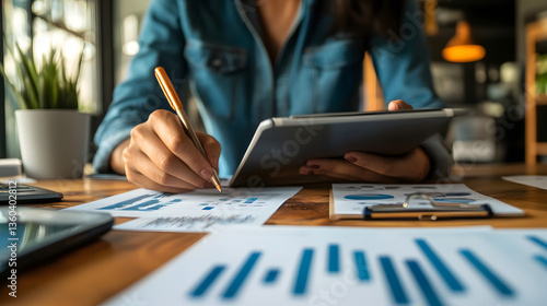 Analyzing Data: A person reviews financial documents, engrossed in the analytical process, enhancing the narrative.