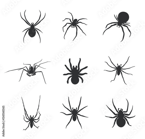 Set of black spider icons. Halloween spider icons. Spider silhouette collection
