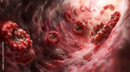 A closeup of inflamed tissue healing over time, with a progression from active inflammation to a healthier state Inflammatory bowel disease IBD concept. illustration