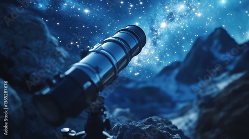 Celestial exploration through telescope in starry night outer space digital art cosmic environment close-up view