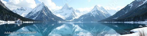 Scenic view of Panorama Morskiego Oka with snow-capped mountains reflecting in crystal clear lake, breathtaking, vacation