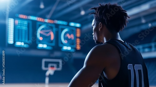 An AI powered sports performance analysis tool, analyzing athletic performance metrics in a high-tech sports lab, Sports tech style