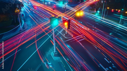 An AI powered traffic signal optimization system, adjusting traffic lights in real-time based on traffic flow and congestion data, Transport tech style