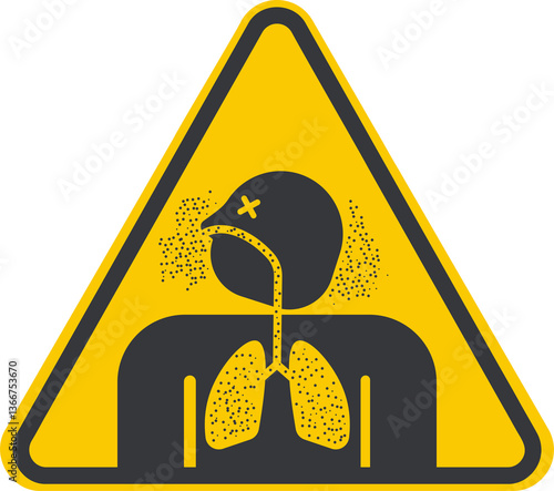 Isolated pictogram representing poor air quality, pollution hazards, and the danger of inhaling airborne particles affecting lung health and safety