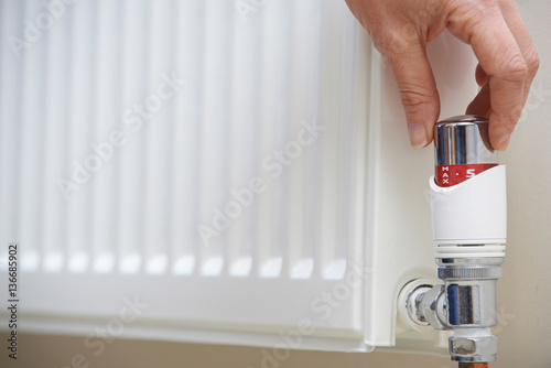 Close Up Of Hand Adjusting Heating Thermostat