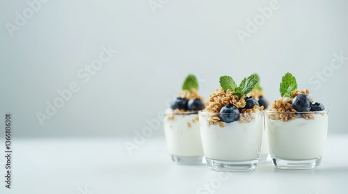 Fresh probiotic yogurt with blueberries and granola in a bowl, healthy breakfast or snack concept, nutritious food with superfood ingredients for gut health and digestion.