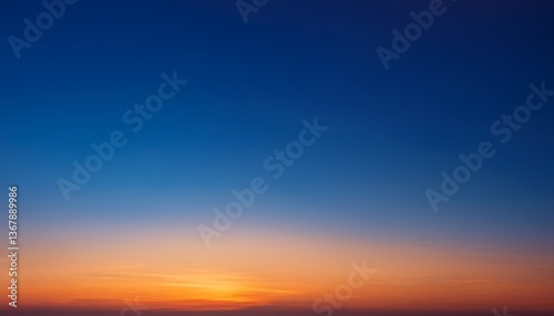 深い青から暖かいオレンジに変わるグラデーションの夕焼け空
