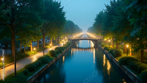 Photo Realistic Overhead View of Eco-Friendly Park with Sustainable Urban Infrastructure Overlay