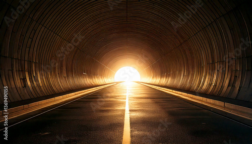 暗いトンネルの出口から明るい光が射しているAI生成イラスト