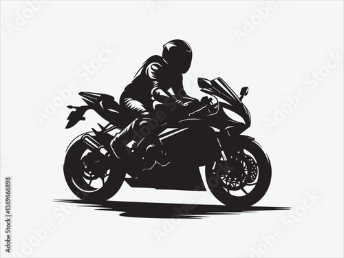 Motorcycle Rider Silhouette in Dynamic Pose with Bold Lines and Dramatic Contrast