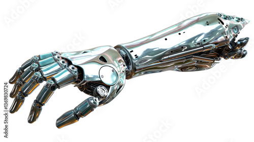 Cybernetic Arm: Futuristic vision of a detailed, polished cybernetic arm with intricate mechanical features, highlighting technological advancement and artificial intelligence.