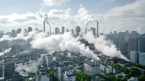 Industrial City Skyline with Pollution Smoke Environmental Concerns and Urban Development