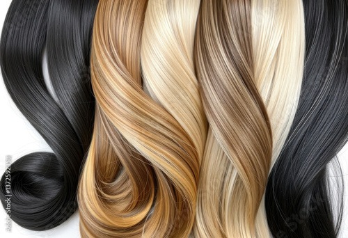 Mechones de cabello largo en diferentes colores como muestras para extensiones